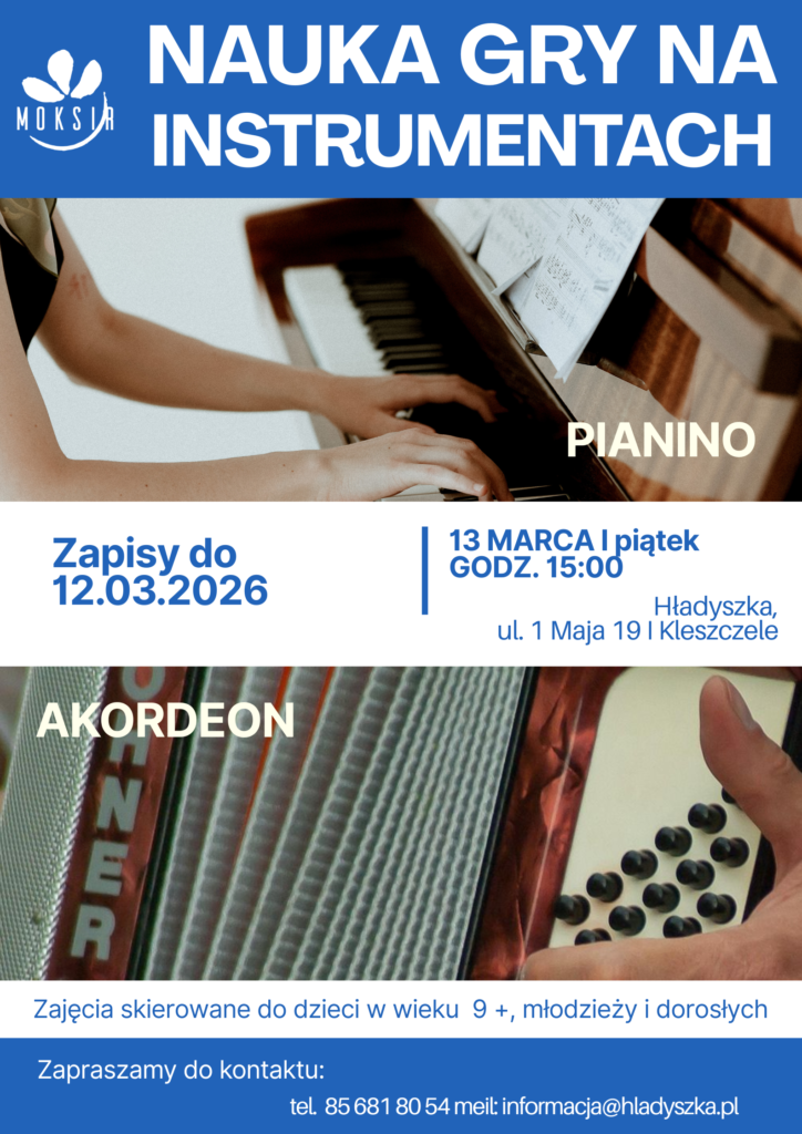 Zawsze chciałeś usiąść przy pianinie, akordeonie? Nigdy nie jest za wcześnie ani za późno, by zacząć! Muzyka to nie tylko hobby – to sposób na stres, świetny trening dla mózgu i czysta frajda.