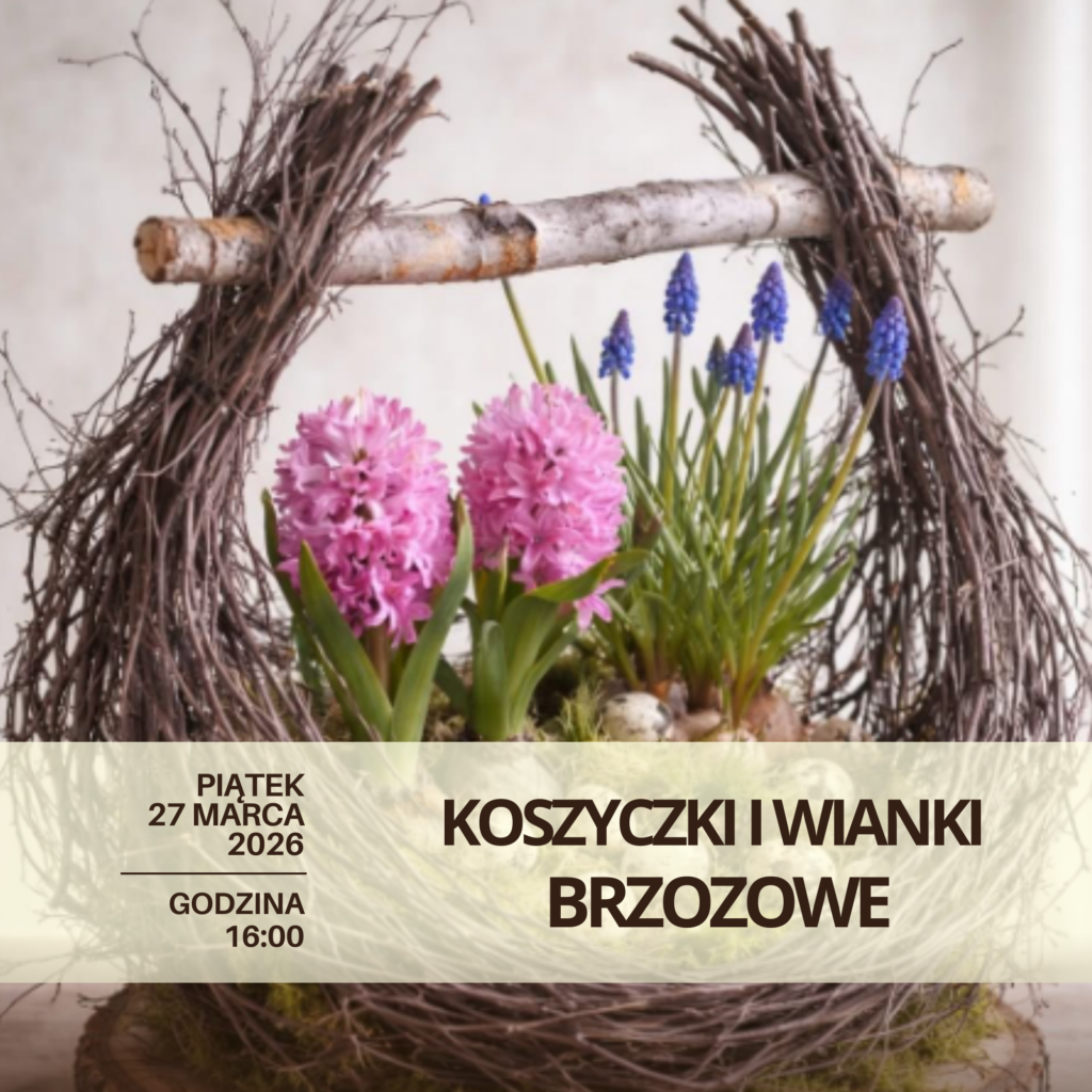 Zapraszamy na warsztaty, podczas których będziemy tworzyć koszyczki i wianki z brzozy. Własnoręcznie wykonamy koszyki na kwiaty oraz wiosenne i wielkanocne dekoracje, które pięknie ozdobią dom lub świąteczny stół.