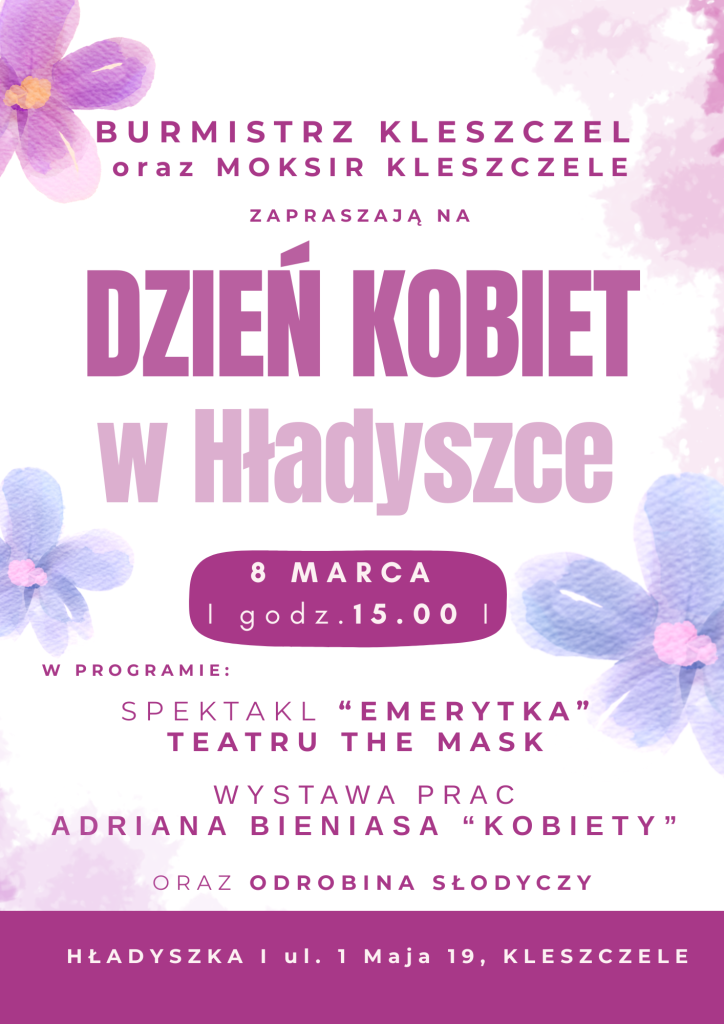 Serdecznie zapraszamy w imieniu własnym oraz Burmistrza Kleszczel do wspólnego celebrowania 𝔻ℕ𝕀𝔸 𝕂𝕆𝔹𝕀𝔼𝕋.