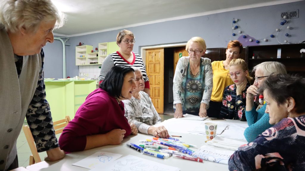 Koło Gospodyń Wiejskich „KŁADECZKA” z Policznej po warsztacie wprowadzającym poprowadzonym przez Alinę Dębowską. Przystąpiło do działania i pilnie poznaje tajniki wyszywania by móc stworzyć „policzańską” część Ręcznika Życia.